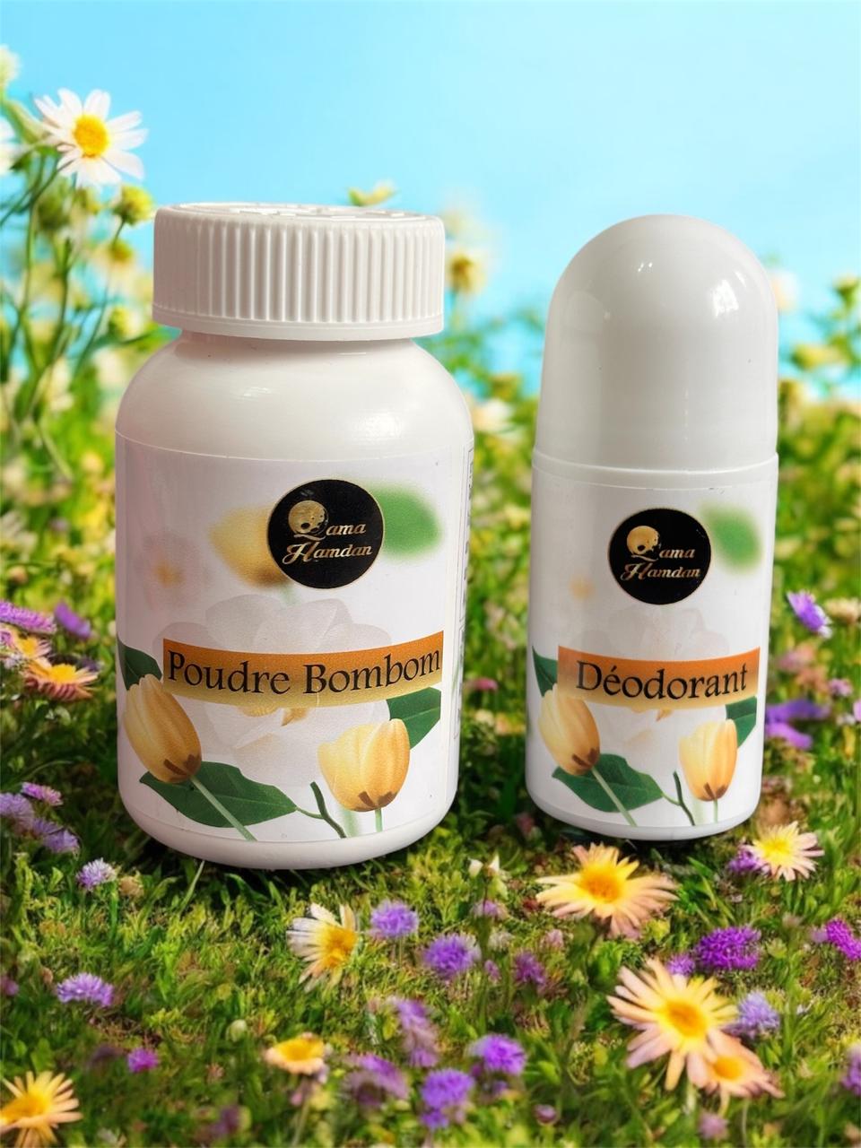 مجموعة مزيل العرق الطبيعي بالياسمين – بودرة وستيك من قمر حمدان